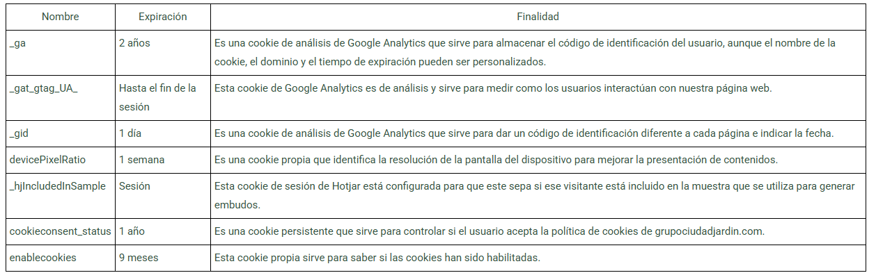 Detalles de cookies utilizadas por Residencia Geriática Ntra. Señora de la Luz.
